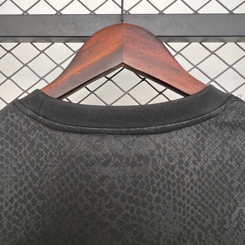 La maglia Special Joint Edition 25/26 del Barcellona unisce eleganza e innovazione, con un look total black arricchito da dettagli viola che risaltano con stile. Lo stemma del club e il logo Nike sono rivisitati in una tonalità viola elettrico, abbinata al logo Spotify centrale, creando un contrasto moderno e accattivante.