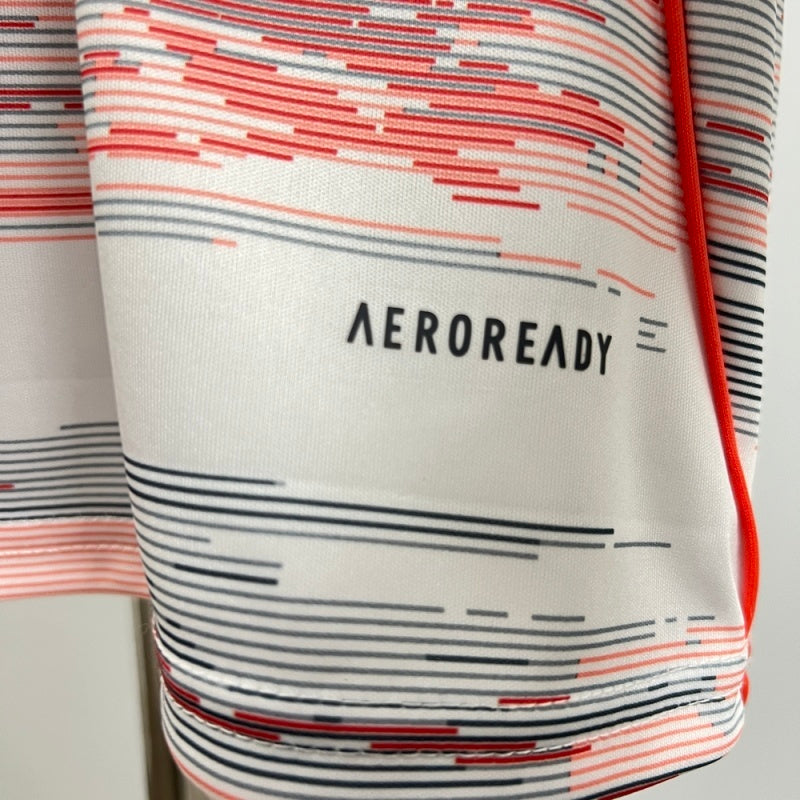 La nuova Away 25/26 del Bayern Monaco unisce innovazione e stile con un design moderno e accattivante. La base bianca è arricchita da una grafica astratta in rosso e grigio, creando un effetto dinamico che richiama energia e movimento.