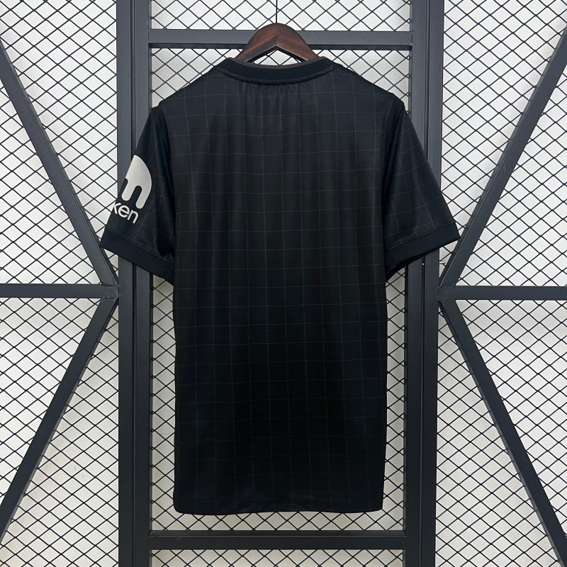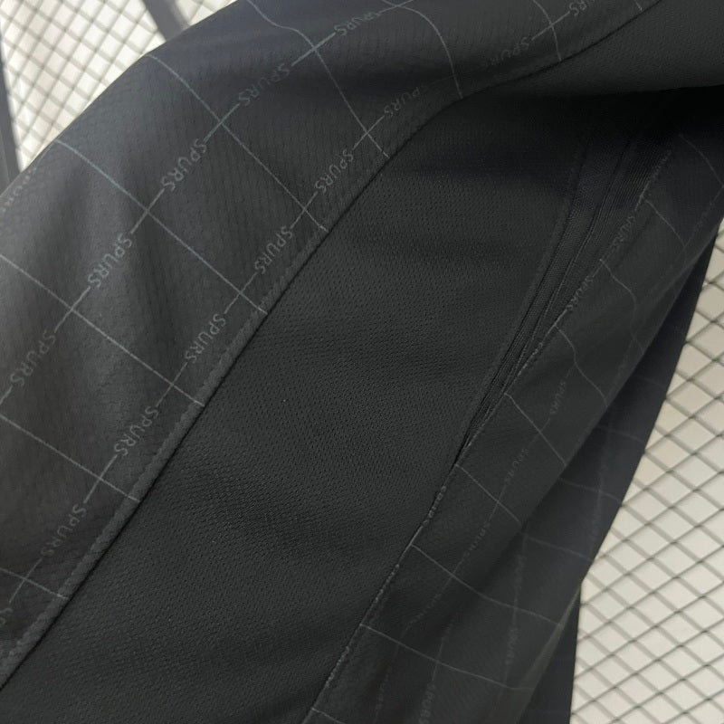 La Away 2025/26 del Tottenham Hotspur, firmata Nike, è un capolavoro di minimalismo e classe. Il design completamente nero opaco con un leggero pattern a quadretti tono su tono esprime eleganza e potenza, perfettamente in linea con lo spirito moderno degli Spurs.