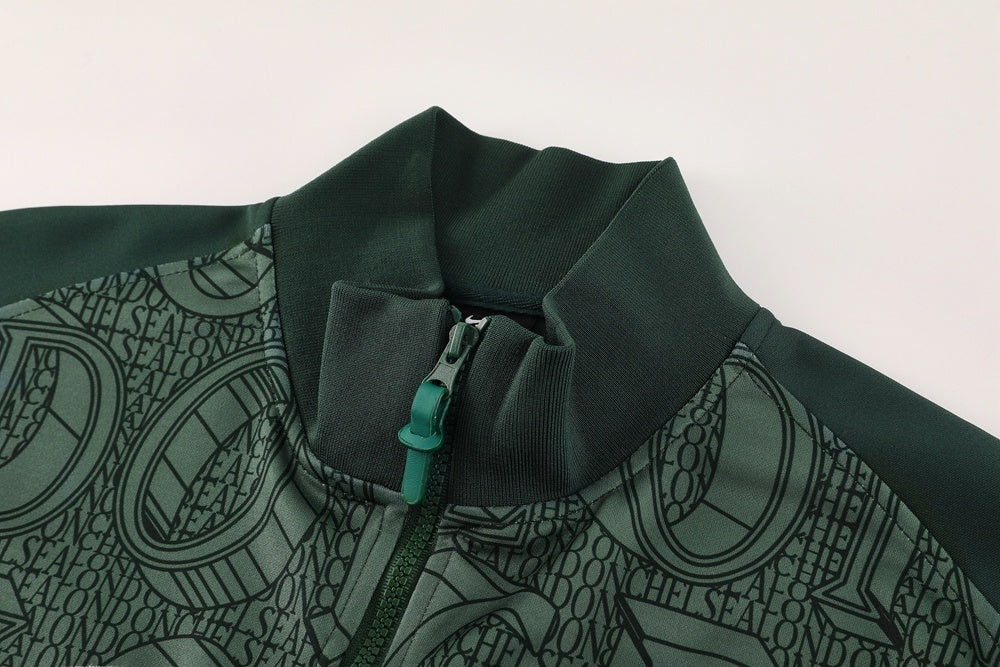 Giacca con base verde scuro e scritta “LONDON” tono su tono