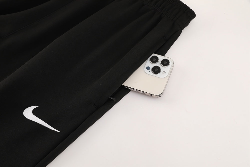 Pantaloni neri con logo sul lato e vestibilitĂ slim