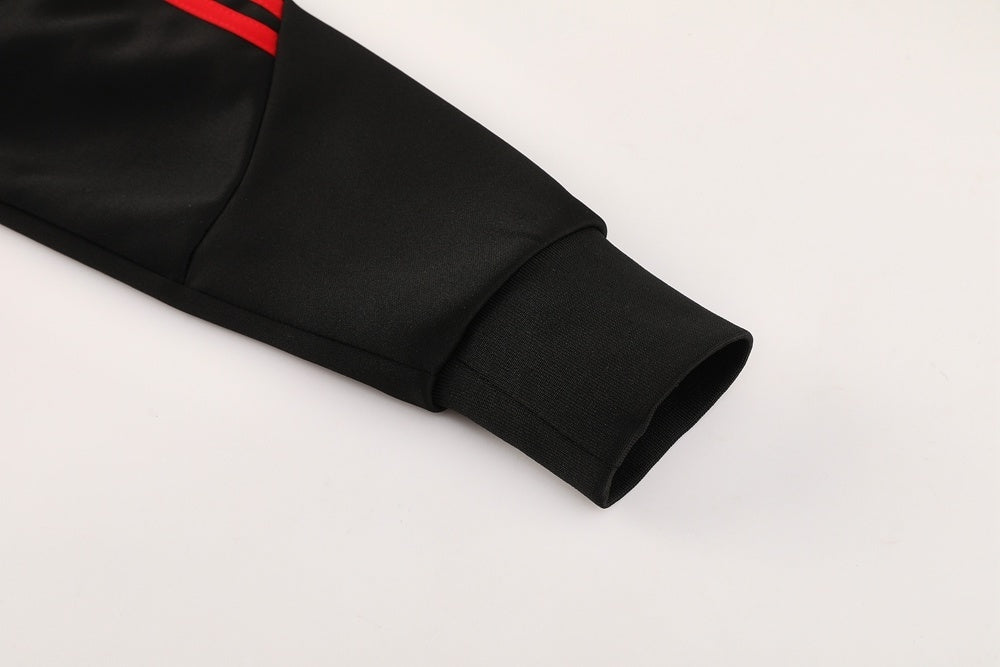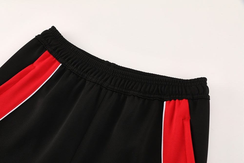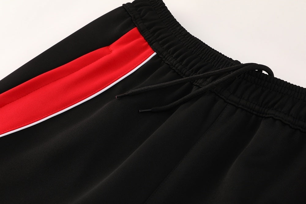 Design nero elegante con dettagli rossi e bianchi ai lati