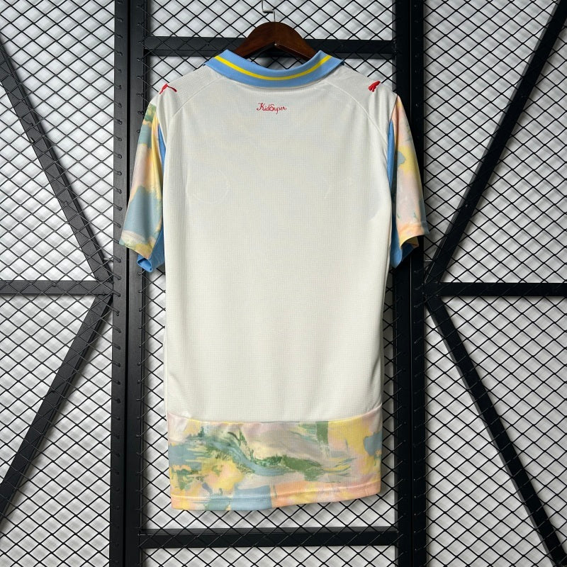 Realizzata in tessuto leggero e traspirante, questa maglia è pensata per offrire massimo comfort durante il tifo e nel tempo libero. Il colletto con dettagli azzurri e gialli aggiunge un tocco moderno, mentre lo stemma del club e il logo Red Bull sul petto ne confermano lo stile inconfondibile.